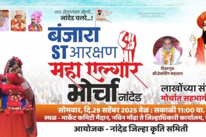 बंजारा समाजाला एसटी मधून आरक्षण घेण्यासाठी सोमवारी नांदेडमध्ये महाएल्गार महामोर्चा धडकणार ………………………… दोन लाखाहून अधिक बंजारा मोर्चात सहभागी ...